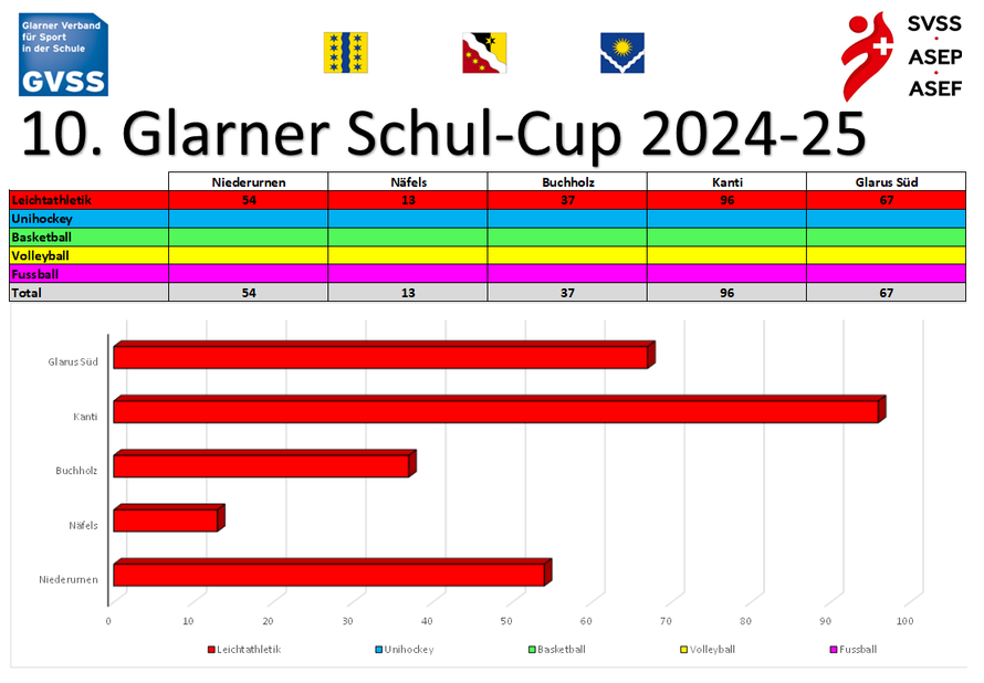 10. Glarner Schul-Cup Schuljahr 2025-26 Zwischenstand