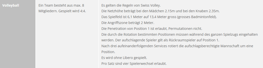 geändert worden. Es gelten grundsätzlich die Regeln des Schweizerischen Volleyballverbandes für Minivolleyball U15 (4:4) mit kleinen Anpassungen.