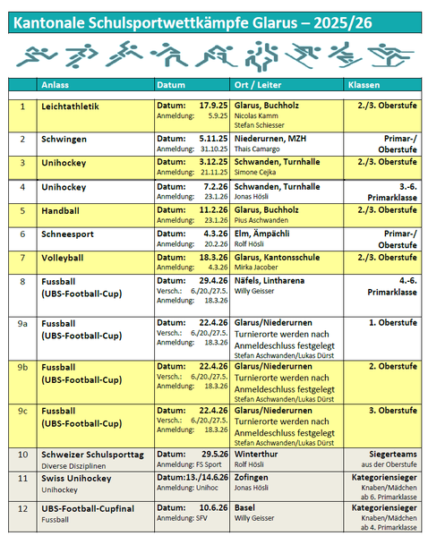 Die definitiven Wettkampfdaten für das nächste Schuljahr 2025-26 (Änderungen vorbehalten)